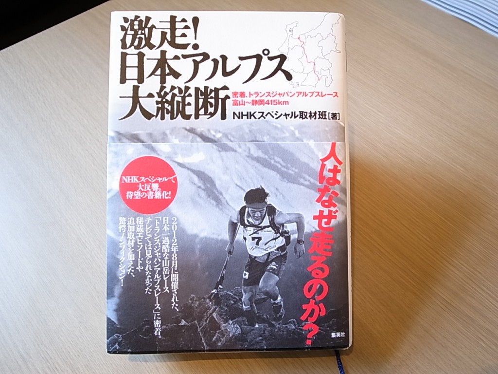 話は変わって去年NHKで放送され、見れなくて後悔している番組がある。「トランスジャパンアルプスレース」。なんと書籍化されていた。新宿の紀伊国屋で見つけた時は、思わずガッツポーズである。一気読みであった。後半は風呂読書で私は泣いていた。汗と涙で顔面ビショビショ。これぞノンフィクションの醍醐味である。