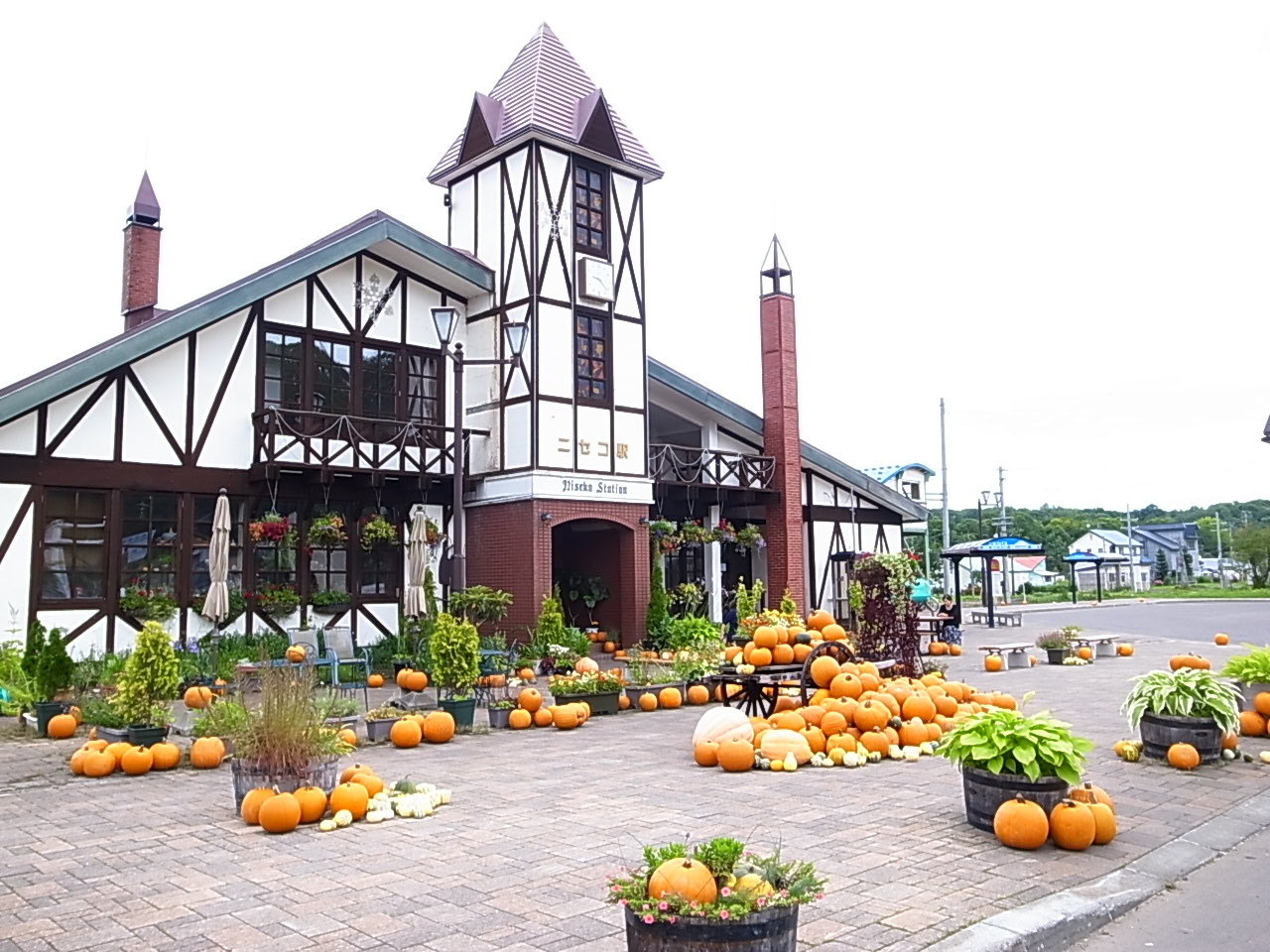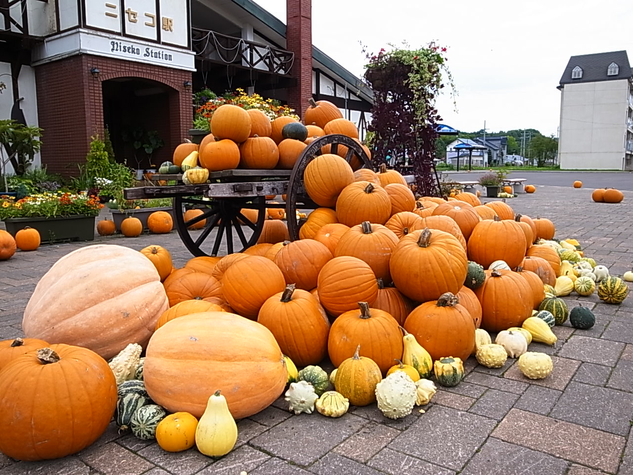 ニセコ駅に到着です。何でこんなにカボチャが有るのか。ニセコ駅に到着です。何でこんなにカボチャが有るのか。