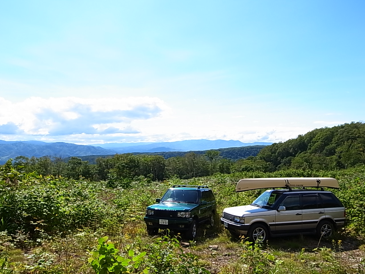 羊蹄山は雲がかかっている。決め写真を求めてサマヨイ走り、林道に突入。感が働き薮を歩いていくと見つけました。脚立の上から撮影です。寒いと思ってダウンベストを着ていくと、暑くて暑くてココは何処。ニセコは観光客で人だらけ。冬はスキーでメジャーですが、夏場も観光客が多いようです。明日はフットパス&キャンプをレポートいたします。信号が少ない北海道。ランドローバーV8エンジンに適しております。燃費が多少伸びるので助かります。