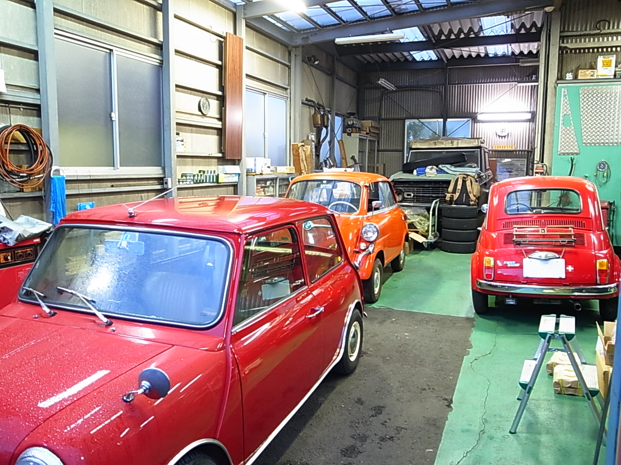 何故かガレージに佇む3台のちっちゃいクルマ達。それも大好きな赤系であります。もうテンションマックスであります。