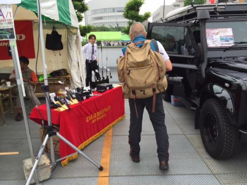 ツインランドの高松店長のブログに貴重な写真を発見。大好きなカメラバッグを背負っている私めが。自分の後ろ姿はなかなか撮れないので無断拝借。お許しください高松君。こんなに大きいのですね。でもカッコイイな間違い無い。同タイプをネットで探しているのですがなかなか出会わない。本当はコレがいいのですが妥協して違うデザインをゲット。中古品なのに美品でありました。