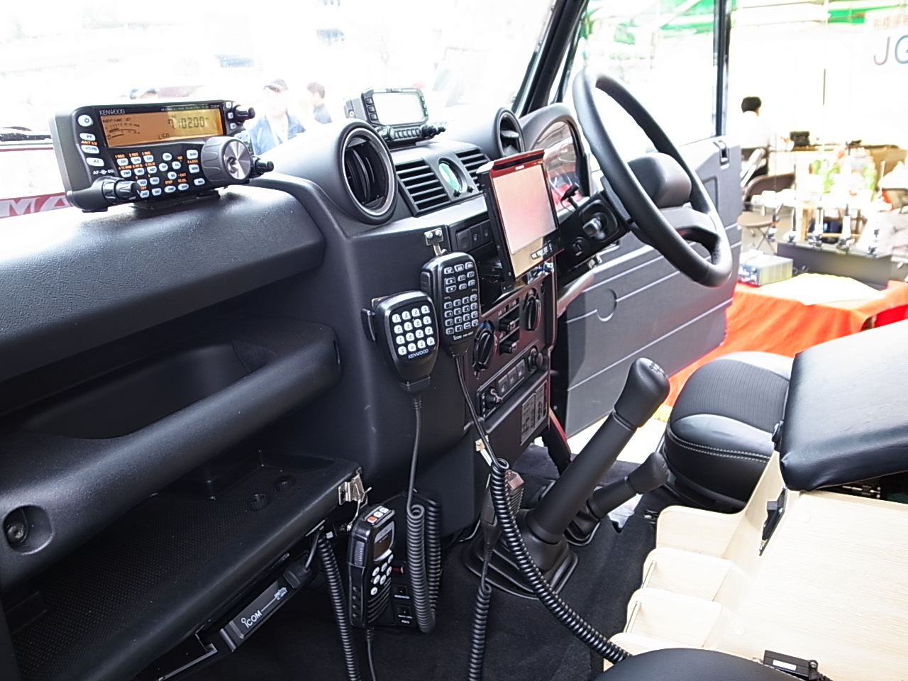 無線同好の志が集まり大音量で交信を行っていた。コレだけの装備で市民の注目を集めない訳がない。ディフェンダーを含め人気ブースなのは理解出来た。