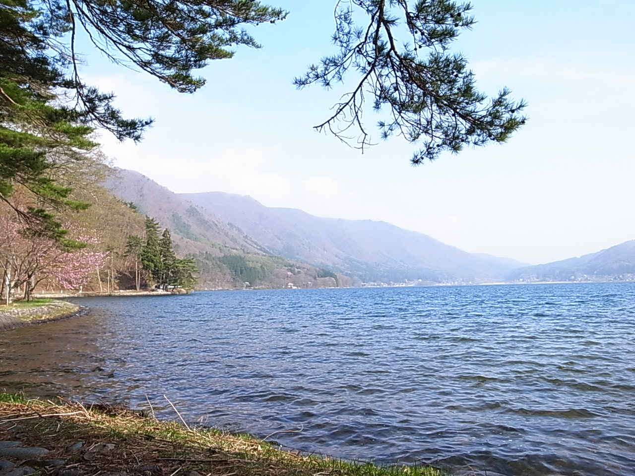 キャンプ場から眺めた景色です。海の無い長野県では夏場に海水浴で木崎湖は利用されるとか。水深もそんな深く無く安全だと話を聞きました。