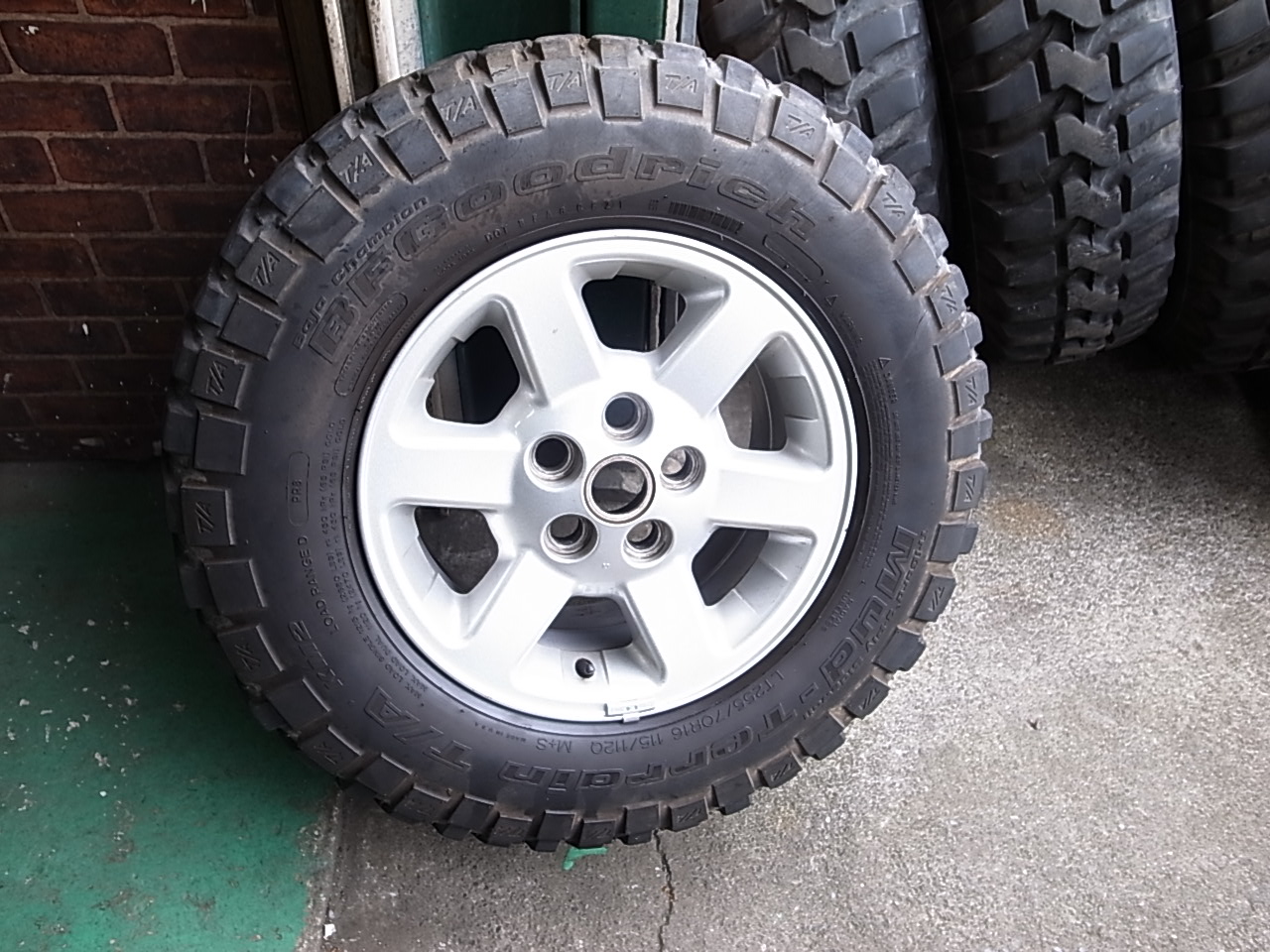 今回装着したタイヤは255/70R16である。ホイルはディスコ2純正タイプ。イメージ通りである。オフロードを走りたい私としては予備タイヤが欲しい。過去バーストで痛い目に。なので予備タイヤは必要アイテムである。誰が何を言おうと予備タイヤを常備したい。中古ホイルが4本セット、中古タイヤも4本セットで購入。ホイル&タイヤセット1本を探すか。この写真の組み合わせは宝くじに当たるより難しいな。もしこの組み合わせが有り売ってもいいよという情報ありましたら連絡お待ちしております。