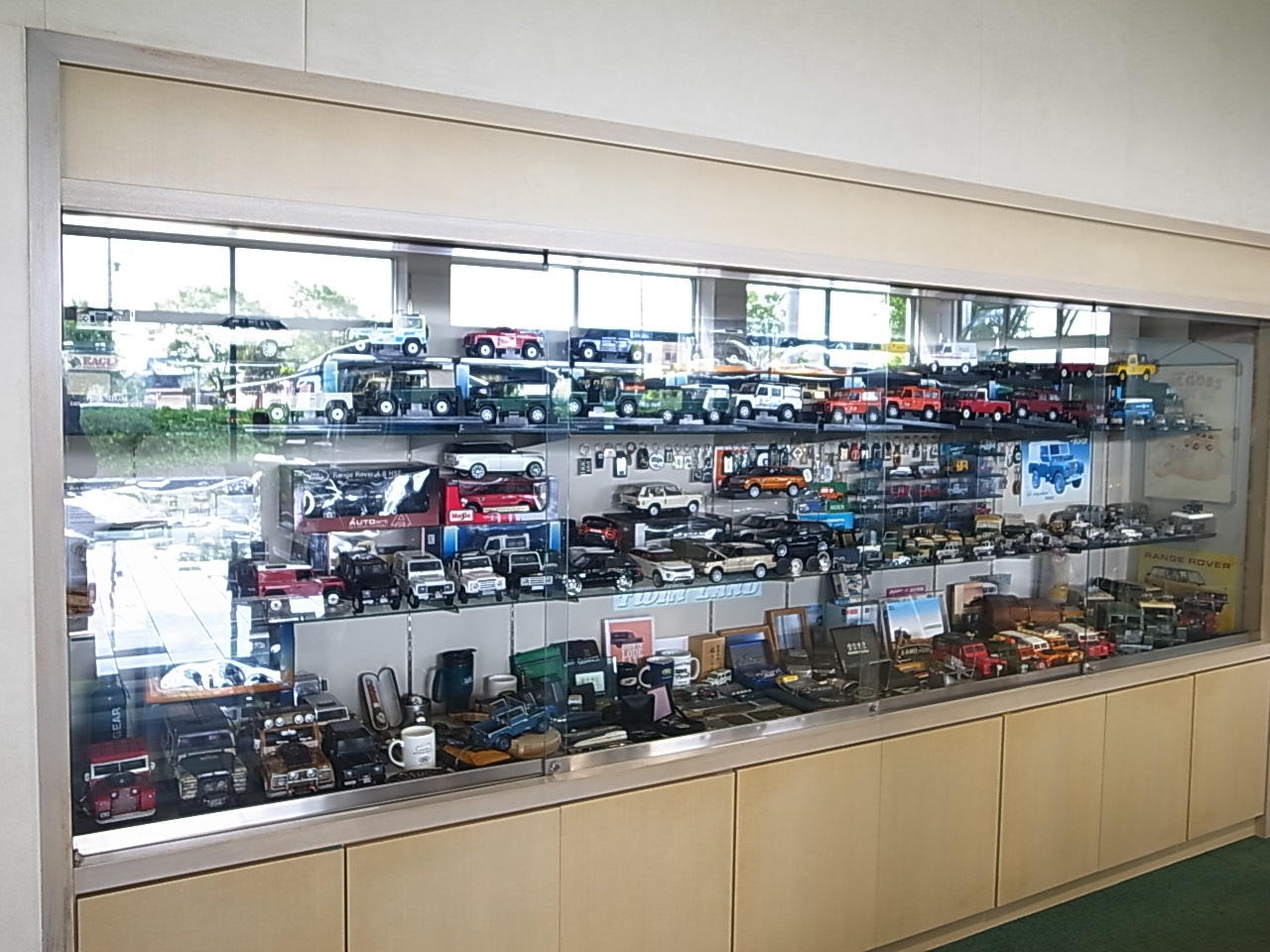 サンカーズのショールムには関戸さんのコレクションが展示されている。特にミニカーは長年に掛けて集めたているので増える事は有っても減る事は無い。勿論ランドローバー各種が並んでいる。