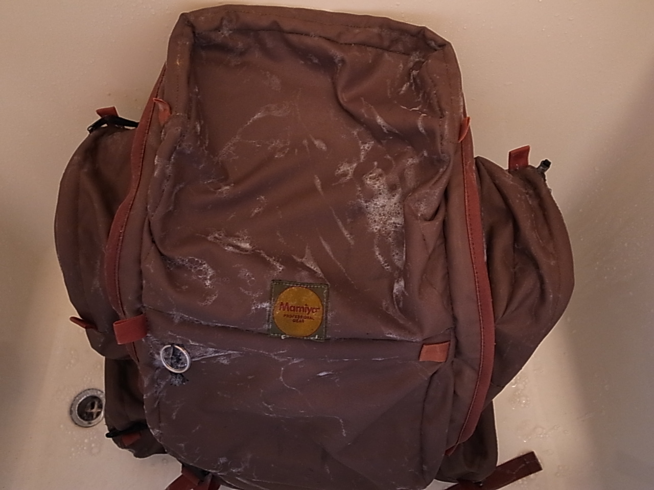 普段使っているリュックが汚れている。そりゃそうだ。購入後に一度も洗ってない。以前クリーニング屋さんに料金を聞くと1万円位と。何1万円そりゃ高い。このリュック何年使っているのか。5年いやもっとだ7年いやもっとだ。洗ってみるかと中性洗剤とリュックを持って風呂場へ。