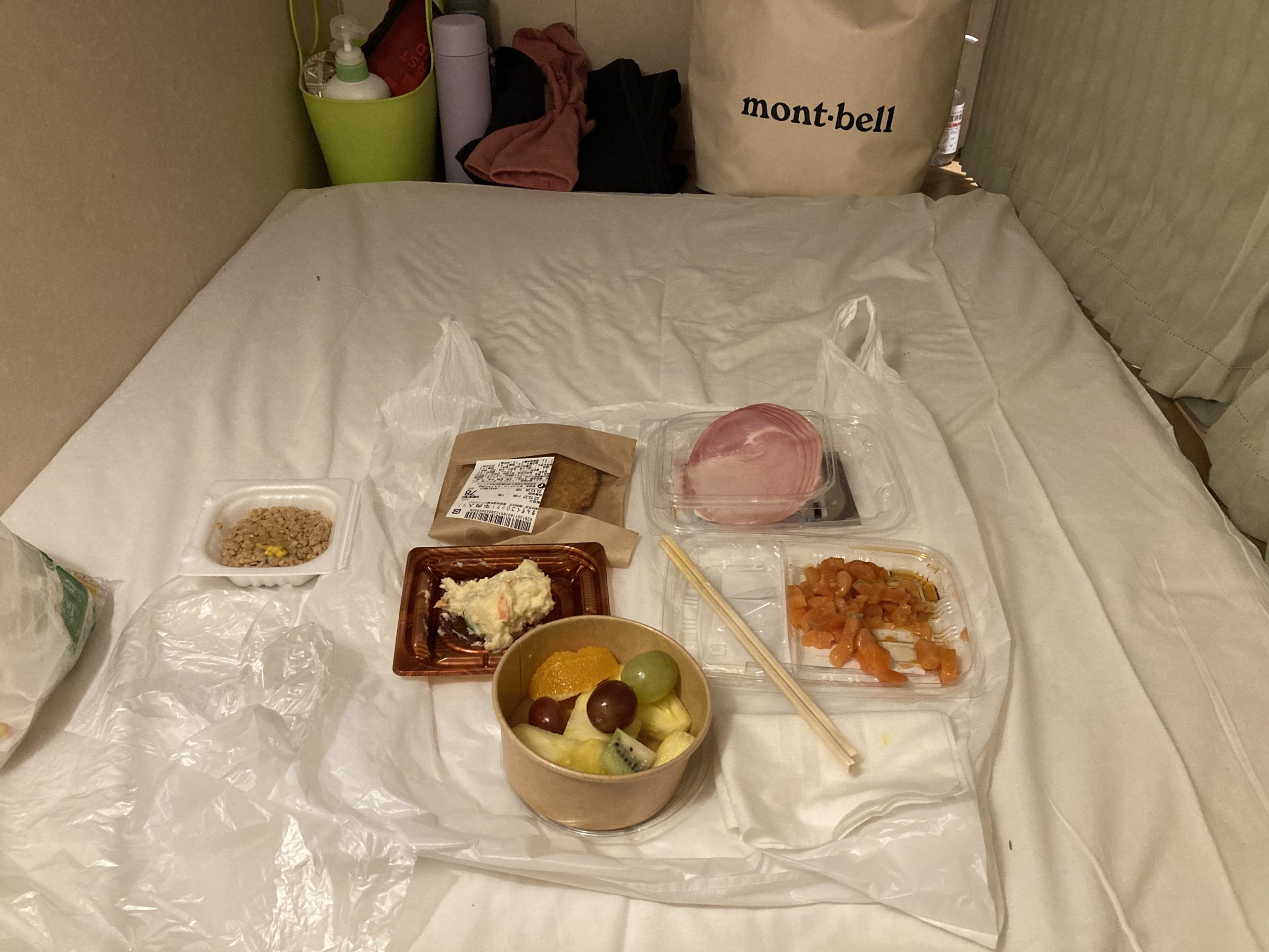 敷布団が取れないかとメクッたら板だった。敷布団に食べ物の染みはマズイので袋を敷いた。大きいサイズにして正解だった。しかし狭くて息苦しい。こんな時でも大好きな納豆が食べたくてワンパック3個食べる始末。コロッケは余分だった。結局食べない。フルーツは定番です。ポテトサラダも定番です。2月東京に戻る時は小部屋にします。そうそう今年最高の買い物をしました。チラッと観えるモンベルのロゴ。明日のブログで紹介します。普段リュックを背負っている私の必要アイテムをやっと発見。サイズも良し。さて何でしょうか。しかし年末年始は家から動か無いのが間違い無いな。伊達に戻って驚いた。雪が無いのだ。今日は真狩村で散髪。ちょっと積雪が心配です。クラシックは洞爺湖工場。果たしてiQで辿り着けるのか。
